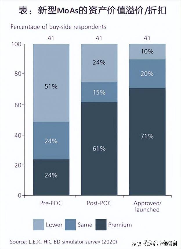 买方预计2021年至2026年期间,授权新型治疗模式和药理作用机制的交易数量将不断增加。Ⅱ期数据被视为大多数资产临床POC的关键转折点;然而,肿瘤学研究可能在开发早期就获得POC数据,从而更早地实现交易价值的提升。对于具有新颖MoAs的资产,POC是关键的价值创造拐点。