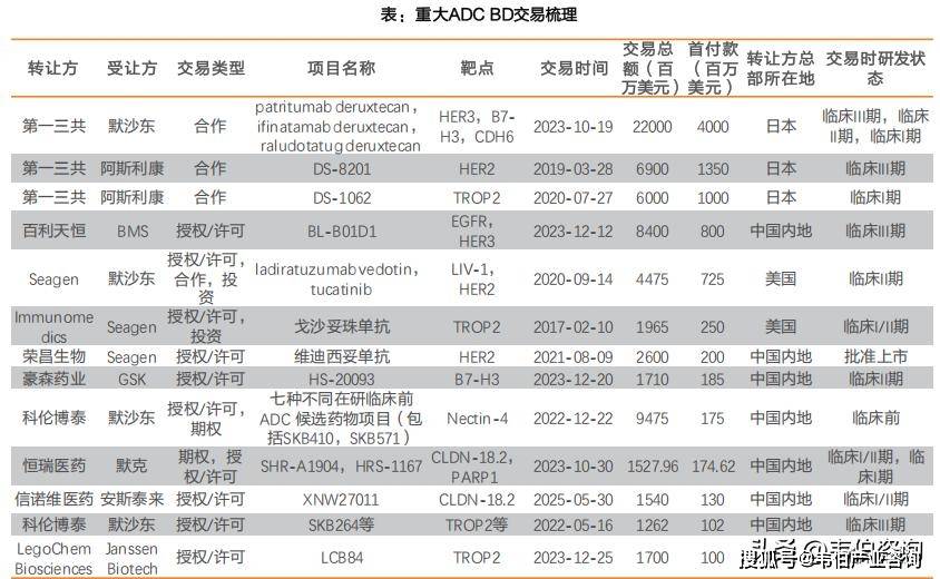 其中百利天恒和BMS在2024年达成的关于EGFRXHER3ADCBL-B01D1的交易,首付款高达8亿美元,刷新了中国ADC类药物单品交易总价的纪录。