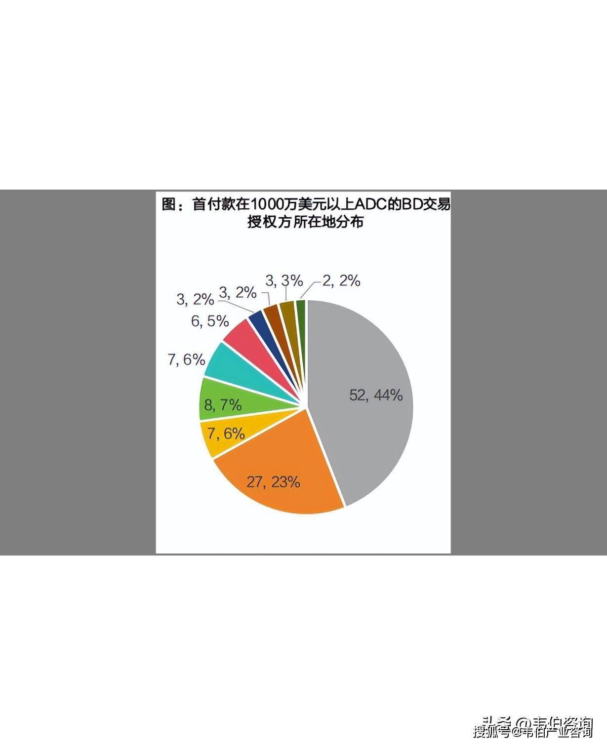 从主要交易来源地来看,美国依然是ADC技术和管线的核心输出国,占比高达44%(共52项交易),其次为中国大陆(占比23%,27项)与日本(占比7%,8项),反映出亚洲地区,尤其是中国在ADC领域的技术实力逐步提升,成为重要的技术输出与合作对象。