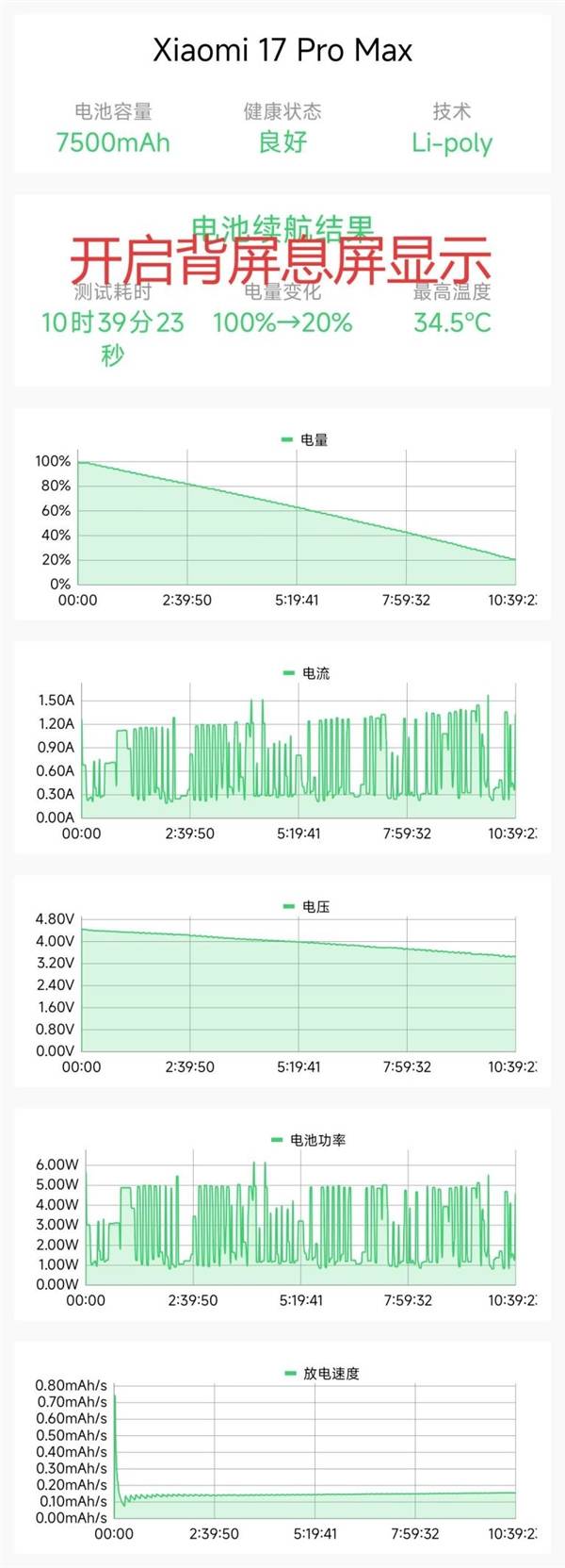 小米17 Pro Max的电池为7500mAh的小米金沙江电池,采用16%硅含量的新一代球形硅负极材料,显著的增加了电池密度。