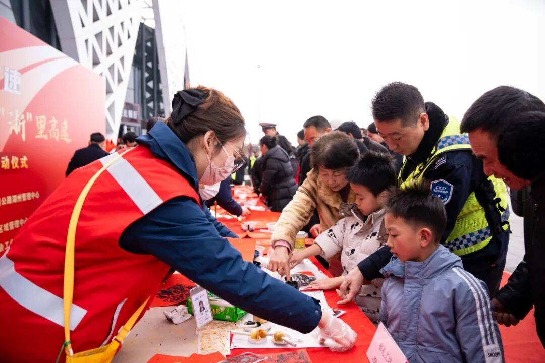 “每年春运我们都会通过这种方式为返乡司乘人员送上新春祝福。”浙江交通集团杭宁高速太湖服务区经理张启宏介绍。当天,湖州管理中心、湖州市书法家协会等多家单位联合开展春运送“福”暖旅途活动,现场为返乡司乘书写“福”字和春联,提前送上新春的祝福,并提供免费姜茶、义诊等暖心服务。同时,司乘也可以免费体验湖州“枕头粽”包制、DIY红包拓印等活动。