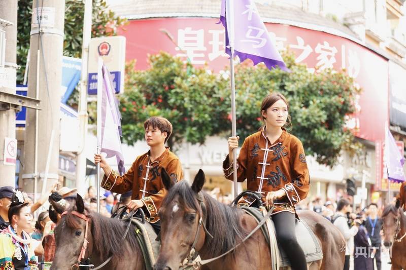 来自丹寨县龙泉镇卡拉银匠村方阵的领头人说:“今天我们方阵主要展示的是苗族的非遗制银技艺,通过巡游让更多人看到我们民族精妙的制银技艺。有时间的话,欢迎大家到丹寨银匠村非遗博览馆去参观。”